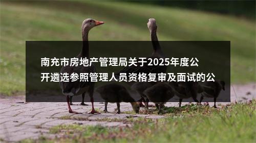 原标题:南充市房地产管理局 关于2025年度公开遴选参照管理人员 资格复审及面试的公告