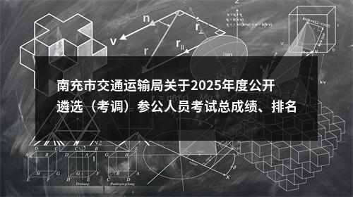 - 南充市交通运输局关于2025年度公开遴选(考调)参公人员考试总成绩、排名及差额考察对象的公告