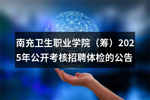 原标题:南充卫生职业学院(筹)2025年公开 考核招聘体检的公告