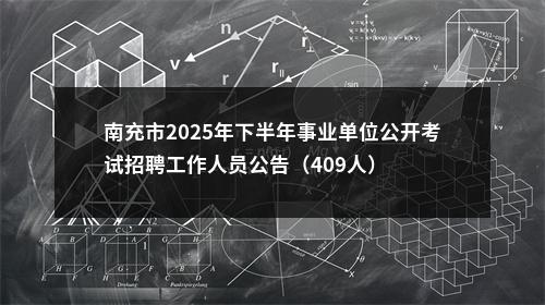 共计招聘409名。具体岗位和条件详见《南充市2025年下半年公开招聘事业单位工作人员岗位和条件要求一览表》(附件2)。